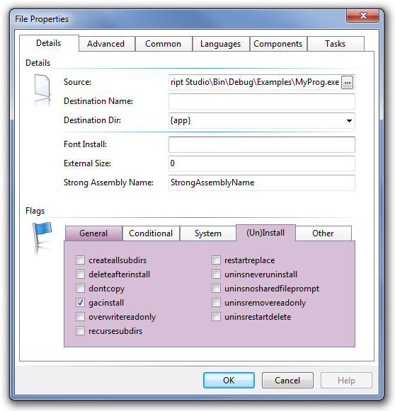 | Description | In files, option gacinstall requiest StrongAssemblyName. There is not place to write this. If I write StrongAssemblyName from Script, Script Studio will remove it after if I add new File from GUI. | ||||